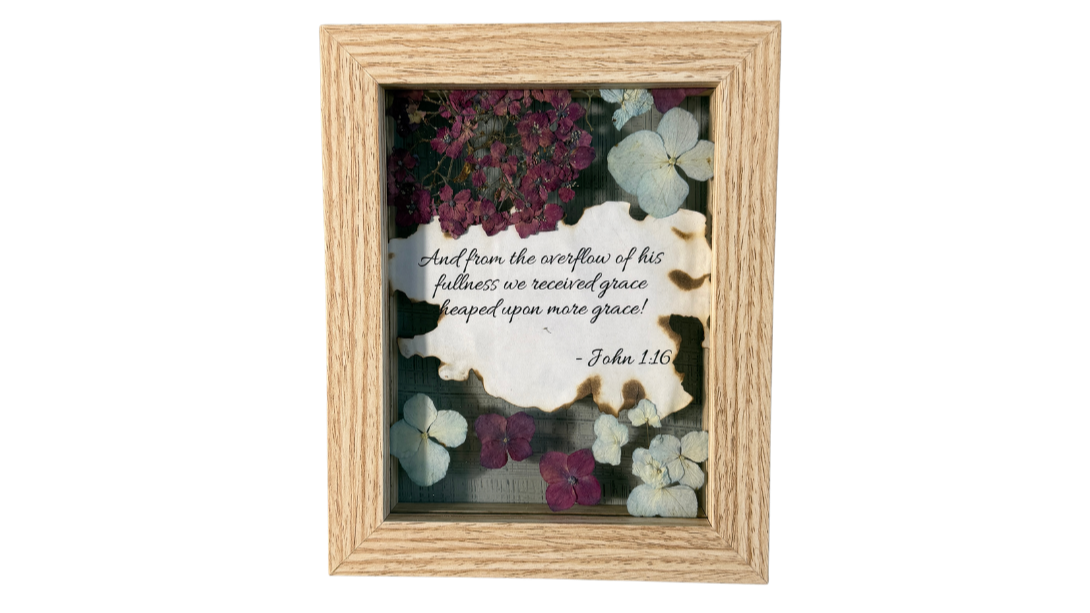Scripture-filled floral displays with hand-burned verses and preserved blooms, uniquely created through prayer and intentionality to bring beauty, encouragement, and truth into your home or to gift to someone you love